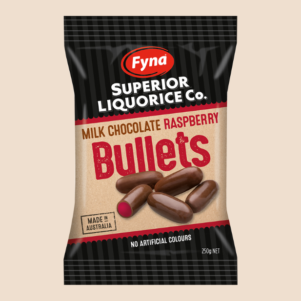 Fyna Superior Liquorice Co. Milk Chocolate Bullets 250g